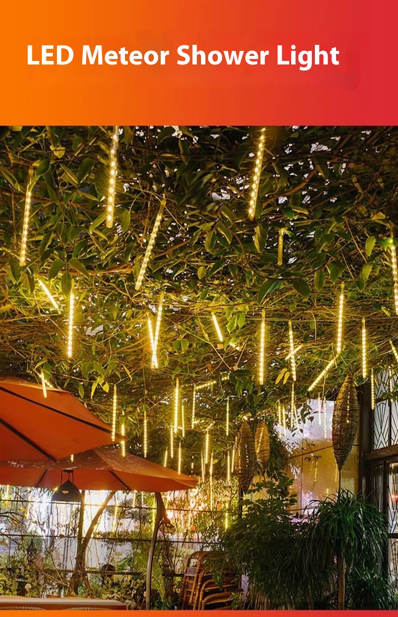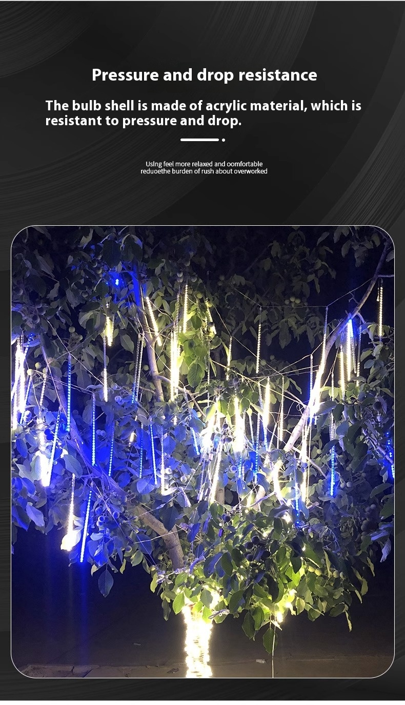 Powered by solar energy, these LED meteor shower lights are energy-efficient, eco-friendly, and completely wireless. Simply place them under sunlight during the day, and watch them automatically light up at night. The waterproof and durable design ensures they withstand rain and outdoor conditions, giving you worry-free use all year round.